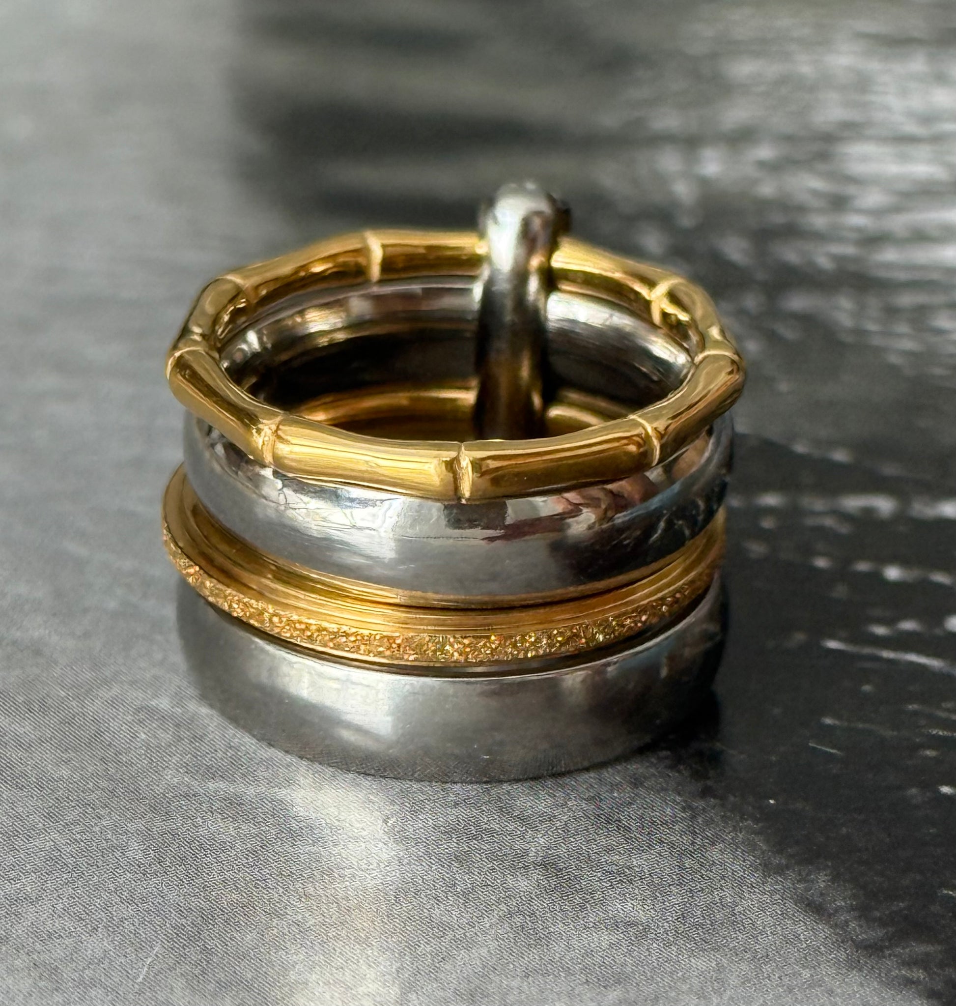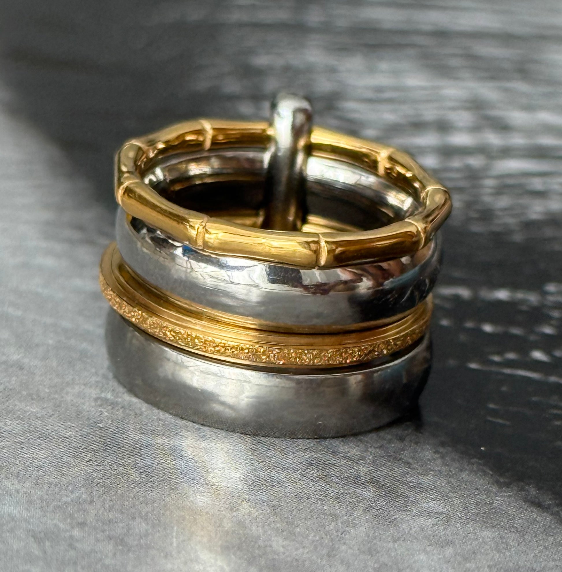 Τετραπλή μοντέρνα σύνθεση σε ασημί και χρυσή απόχρωση με διακριτικη λάμψη για διαχρονικό στυλ.