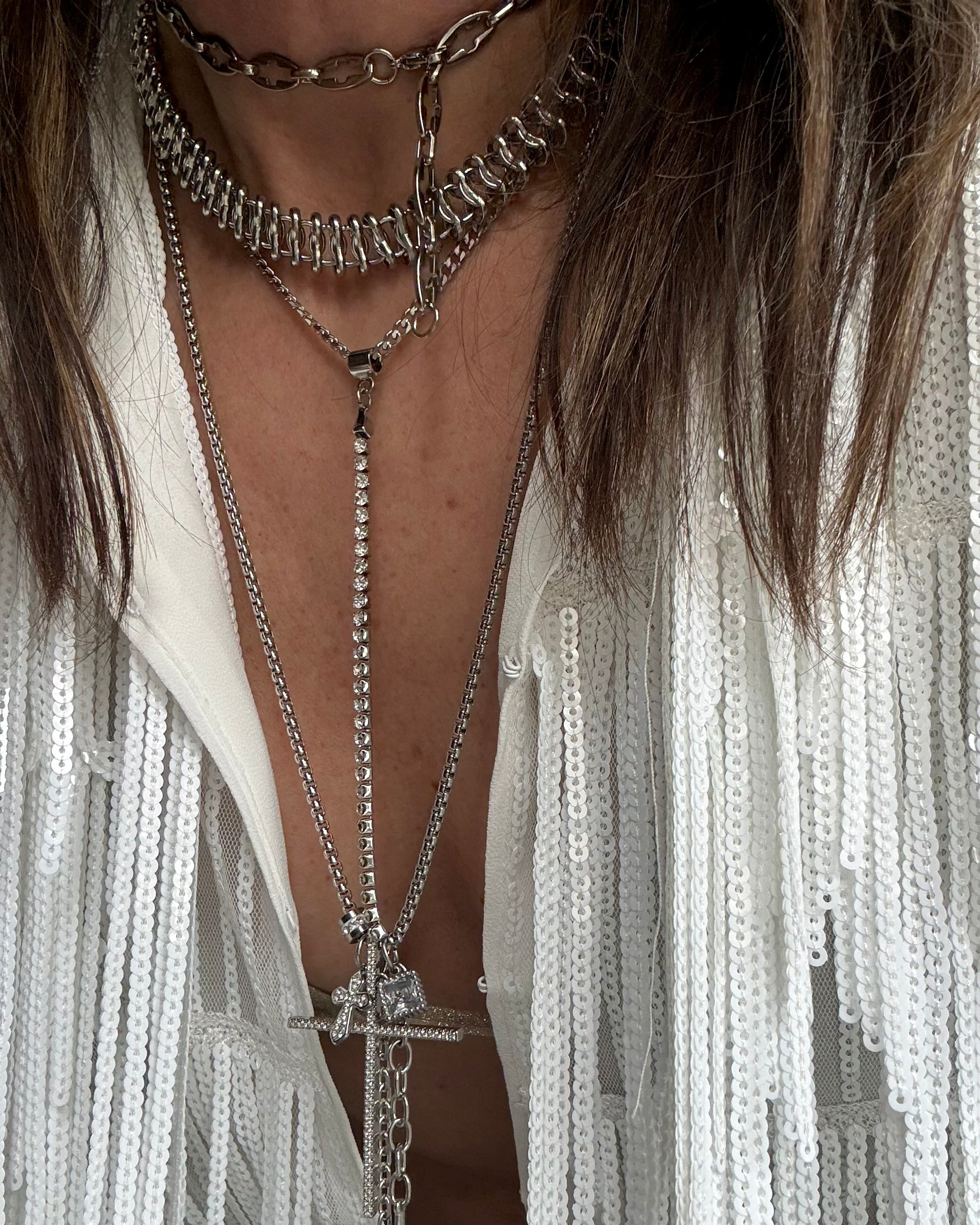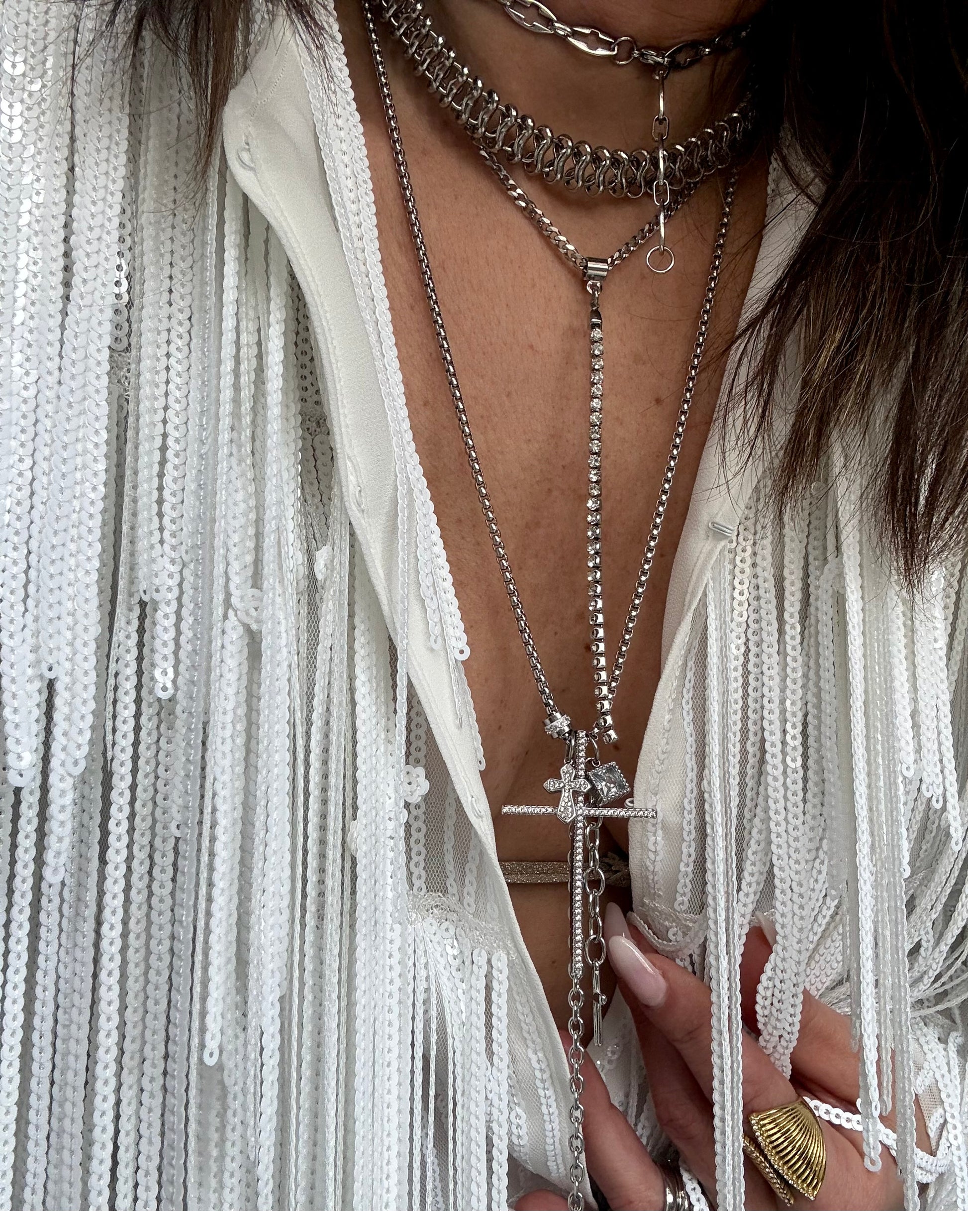 Ένα minimal κολιέ γραβάτα με διακριτική σειρά από λαμπερά στοιχεία που χαρίζουν κομψή λάμψη σε κάθε κίνηση. Καθαρή γραμμή, διαχρονικό design και effortless αισθητική.