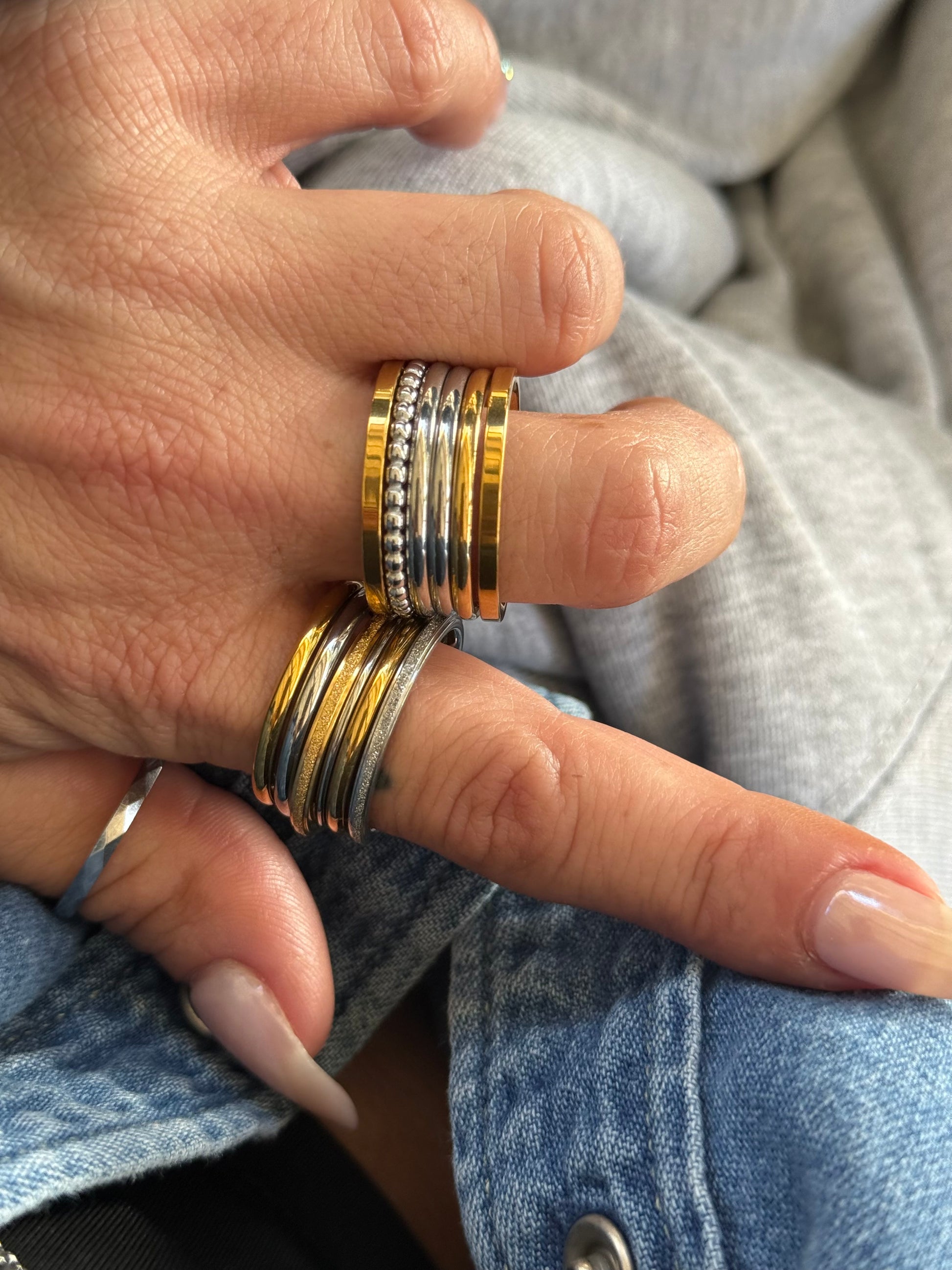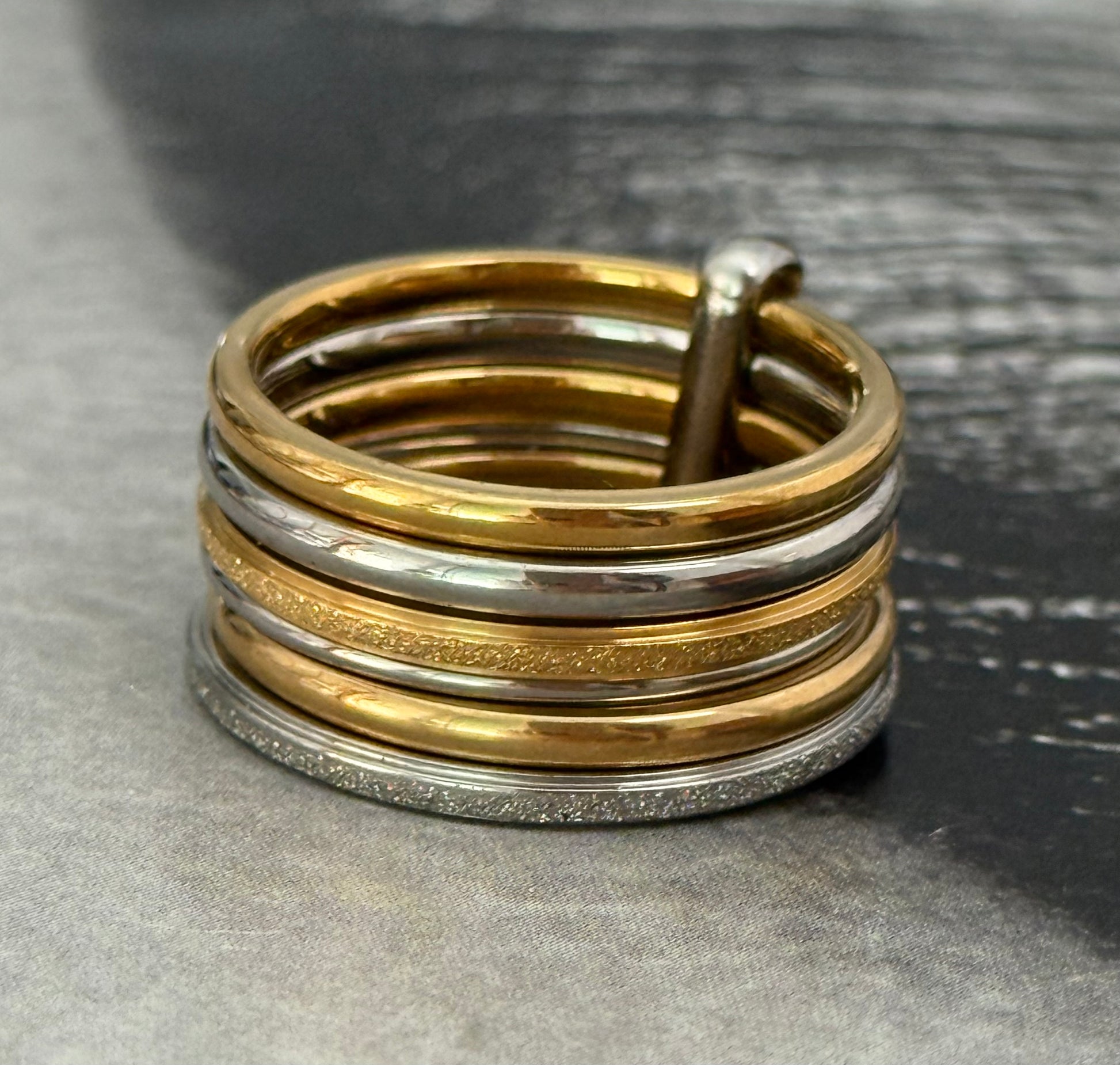 Ένα εκλεπτυσμένο εξαπλο δαχτυλίδι που συνδυάζει την κομψότητα του χρυσού και του ασημιού σε ένα μοναδικό σχεδιασμό . Ιδανικό για κάθε περίσταση.