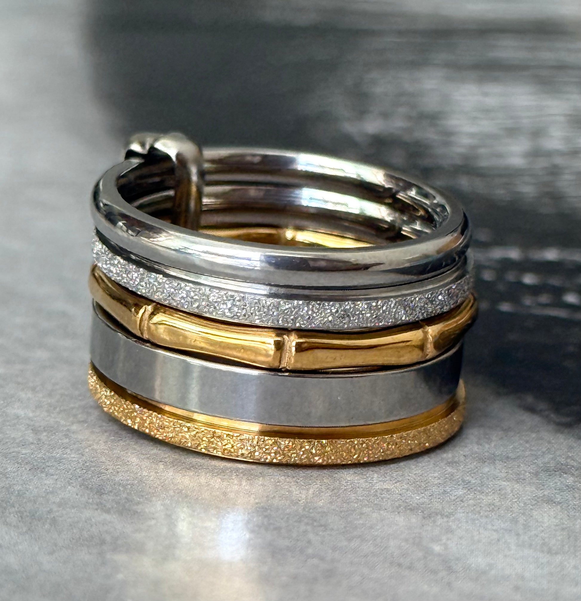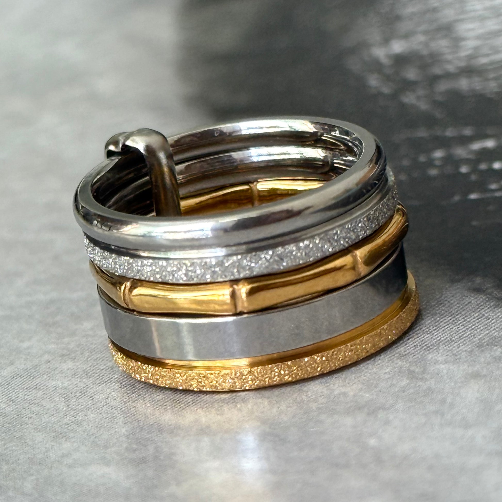 Ένα εντυπωσιακό δαχτυλίδι που συνδυάζει την πολυτέλεια του χρυσού με την μοντέρνα κομψότητα του ασημιού . Ιδανικό για εμφανίσεις με δυναμικό χαρακτήρα !