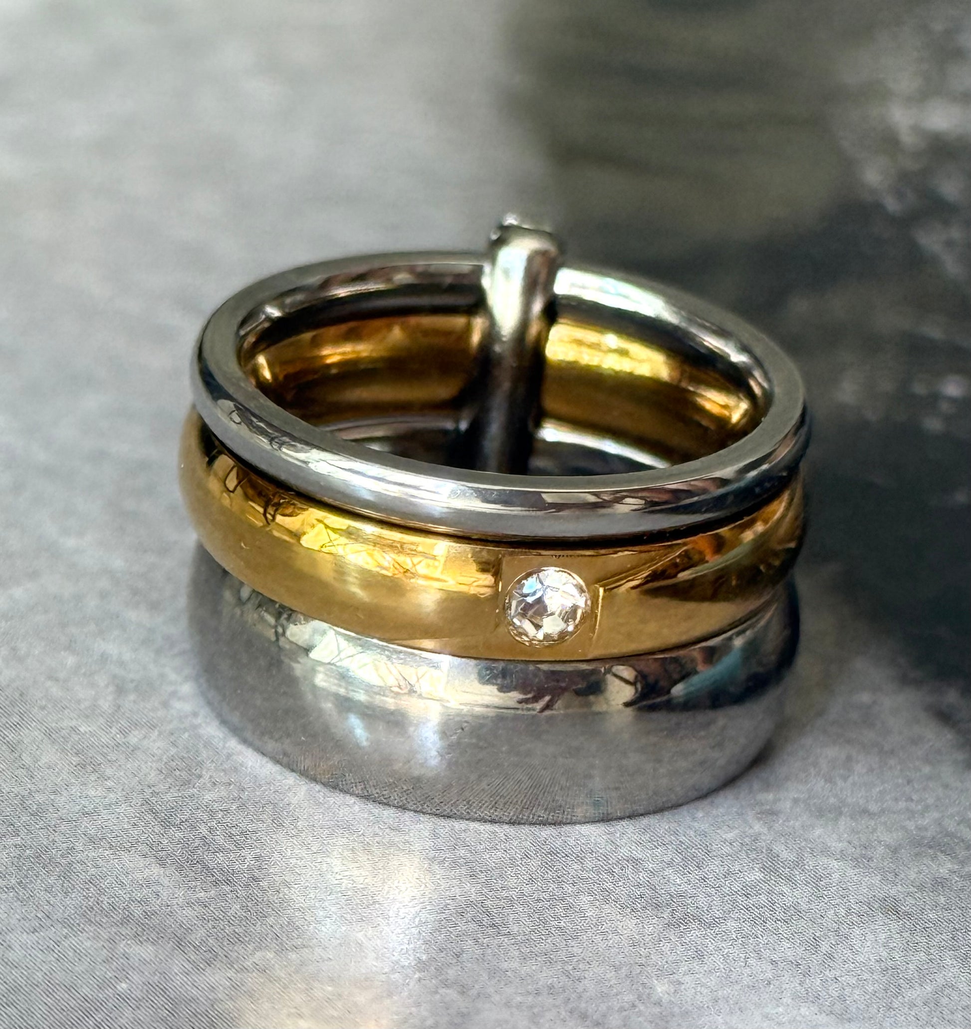 Ένα δυναμικό τριπλό δαχτυλίδι με τολμηρή κατασκευή για όσους θέλουν να ξεχωρίζουν με στυλ .